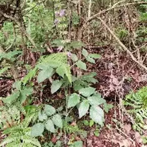 血盆草 原变种为贵州鼠尾草。这一变种与原变种不同在于叶全部基出或稀在茎最下部着生,通常为单叶,心状卵圆形或心状三角形,稀三出叶,侧生小叶小,叶片长3.5-10.5厘米,宽约为长之1/2,先端锐尖或钝,具圆齿,无毛或被疏柔毛,叶柄常比叶片长,无毛或被开展疏柔毛;花序被极细贴生疏柔毛,无腺毛;花紫色或紫红色。