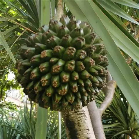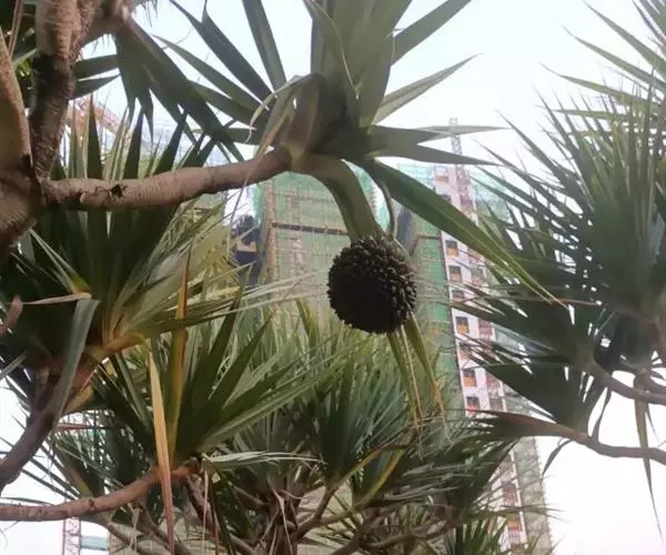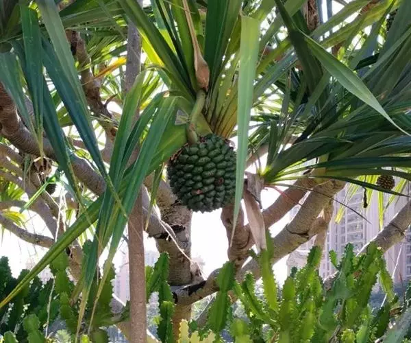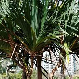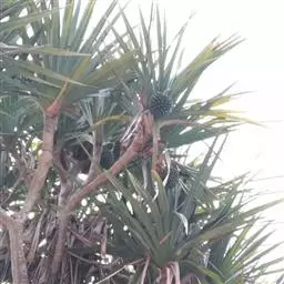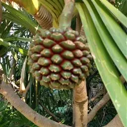 露兜树(学名:Pandanus tectorius Sol.)是露兜树科,露兜树属常绿分枝灌木或小乔木,常左右扭曲,叶簇生于枝顶,叶片条形,长可达80厘米,叶缘和背面中脉均有粗壮的锐刺。雄花序由若干穗状花序组成,佛焰苞长披针形,近白色,雄花芳香,花药条形,药基心形,雌花序头状,单生于枝顶,圆球形;佛焰苞多枚,乳白色,幼果绿色,成熟时桔红色;核果束倒圆锥形,1-5月开花。