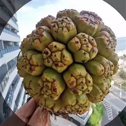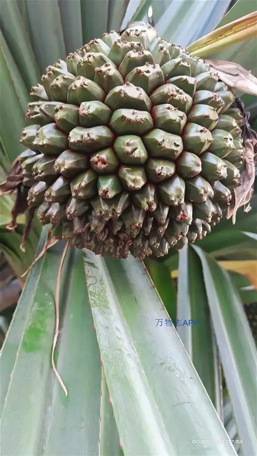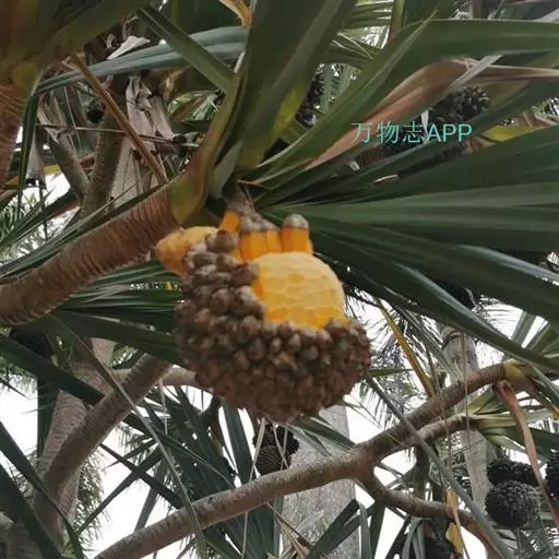 雄花序由若干穗状花序组成,每一穗状花序长约5厘米;佛焰苞长披针形,长10-26厘米,宽1.5-4厘米,近白色,先端渐尖,边缘和背面隆起的中脉上具细锯齿;雄花芳香,雄蕊常为10余枚,多可达25枚,着生于长达9毫米的花丝束上,呈总状排列,分离花丝长约1毫米,花药条形,长3毫米,宽0.6毫米,基着药,药基心形,药隔顶端延长的小尖头长1-1.5毫米;雌花序头状,单生于枝顶,圆球形;佛焰苞多枚,乳白色,长15-30厘米,宽1.4-2.5厘米,边缘具疏密相间的细锯齿,心皮5-12枚合为一束,中下部联合,上部分离,子房上位,5-12室,每室有1颗胚珠。聚花果大,向下悬垂,由40-80个核果束组成,圆球形或长圆形,长达17厘米,直径约15厘米,幼果绿色,成熟时桔红色;核果束倒圆锥形,高约5厘米,直径约3厘米,宿存柱头稍凸起呈乳头状、耳状或马蹄状。花期1-5月。