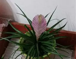 叶玫瑰红色,边缘皱褶,主脉及叶缘呈绿色;