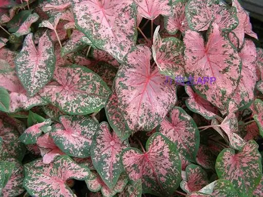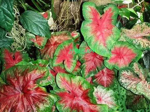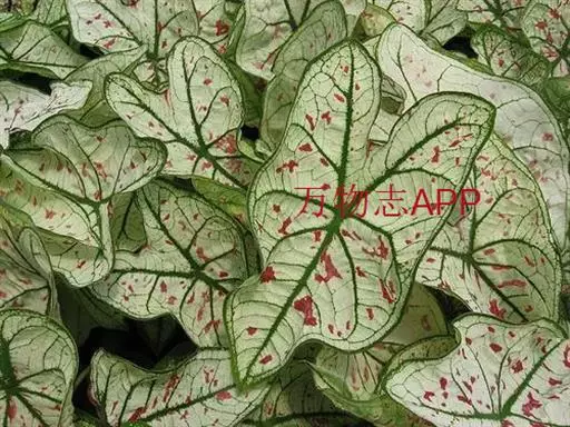 另外有小叶彩叶芋,叶小,卵圆心形,叶脉深绿色,叶面具乳白色不规则斑纹。