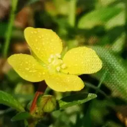 黄花水龙是生长在浅水 黄花水龙 的多年生浮叶植物,长可达5公尺,以不定芽繁殖。具匍匐茎或浮生茎,整株蔓生或挺立生长,整株无毛,茎中空,节间簇生白色气囊(气生根)。叶互生,长椭圆形,叶托大。花开于枝顶,腋生,萼片5枚,呈三角形,长6-12mm,花瓣5枚,金黄色,长9-17mm,雄蕊10。不结实。主要生分布於河川流水域边或低洼湿地。黄花水龙是多年生挺水型草本植物,花开在枝顶,呈黄色。城区河道种植的黄花水龙整朵花直径在5厘米左右,开花时间为每年5—6月。