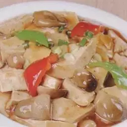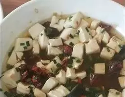山珍豆腐是一道川菜,主料有豆腐,调料有大葱、姜、植物油、酱油、料酒。