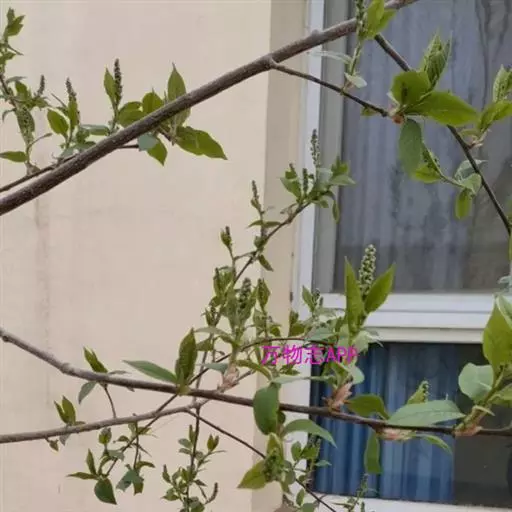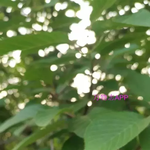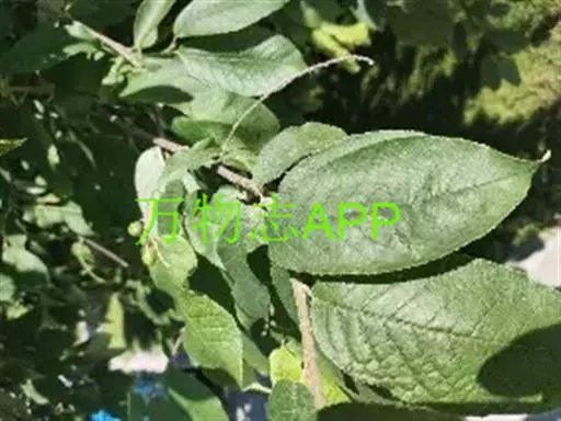 叶片椭圆形、长圆形或长圆倒卵形,长4-10厘米,宽2-4.5厘米,先端尾尖,基部圆形或宽楔形,边缘有不规则锐锯齿,有时混有重锯齿,上面深绿色,下面淡绿色,两面无毛;下面中脉和侧脉均突起;叶柄长1-1.5厘米,幼时被短绒毛,以后脱落近无毛,顶端两侧各具1腺体;托叶膜质,线形,先端渐尖,边有带腺锯齿,早落。