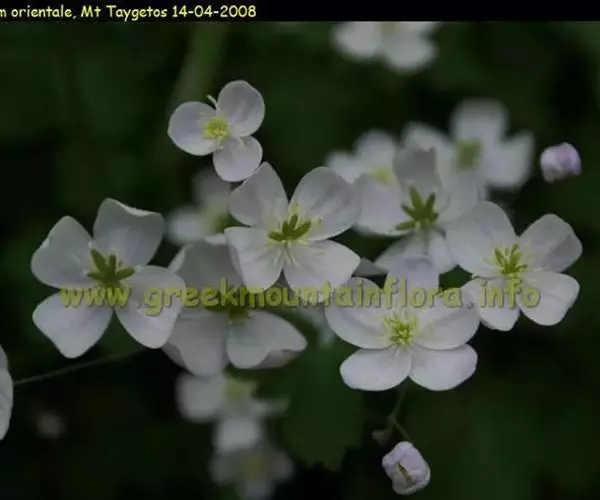 花序圆锥状,两叉状分枝,有多少密集的花;花梗长4-5毫米;萼片4,白色,倒卵形,船形,长约3毫米,宽约2毫米,早落;雄蕊多数,长2-5毫米,花药黄色,长椭圆形,长0.5-0.8毫米,顶端钝,花丝比花药窄或近等宽,上部棒形,下部丝形;心皮12-16,长约1毫米,花柱比子房稍短,直或上部稍弯,在腹面上部生柱头组织。