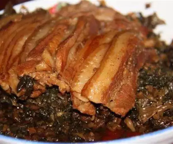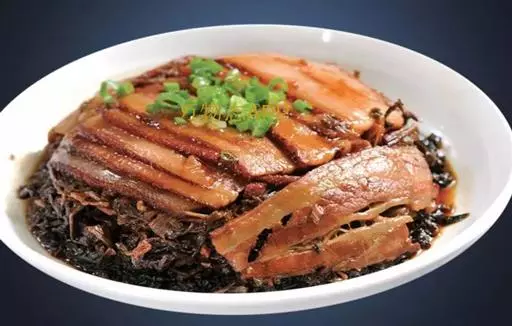 梅菜扣肉(英文名:Pork with salted vegetable),汉族传统名菜,属客家菜 。制作材料有五花肉、梅菜、葱白、姜片等。