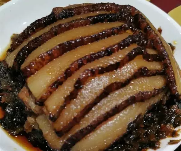 成菜后,肉烂味香,吃起来咸中略带甜味,肥而不腻。
