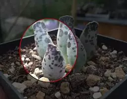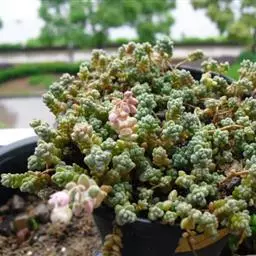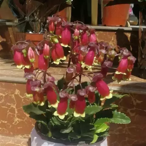 多年生肉质植物,又名舌洋吊钟。其茎粗壮,茎呈灰白色,植株多分枝,叶片倒卵形,对生,排列紧密,叶色呈淡绿色或黄绿色,被有浓厚的白粉,当春秋季阳光充足时,叶缘会变成红色。春季开花,花小,筒状,花色黄色 。