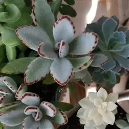江户紫,景天科伽蓝菜属草本植物,是多年生草本花卉。花白色,但栽培中很少能见到花,常作观叶植物栽培。…