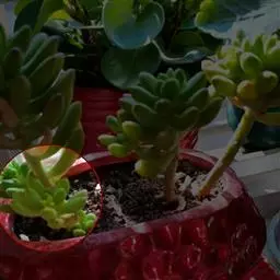 待插穗发根或实生苗长大后,即可定植于盆中,可选用4份的粗河砂(细粒发泡炼石或素烧石)加上4份的细河砂,和各一份的有机培养土、珍珠石、蛭石的混合物来种植,初期可先种于3.5吋的盆中,再依生长情形选用较大的盆器,或种于露地花坛内。