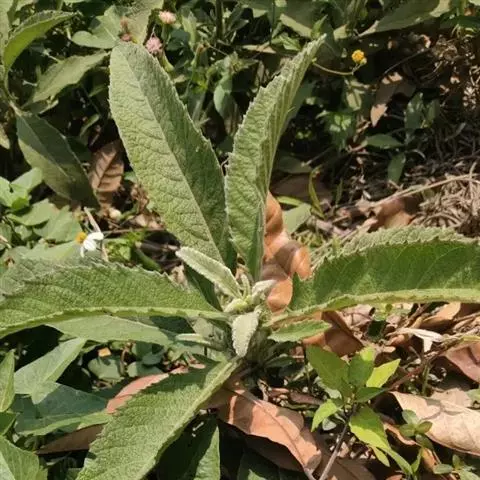 粗壮草本或亚灌木状。茎直立,高0.5-3米,基部径约1厘米或更粗,木质,有分枝,具粗沟纹,被粘绒毛或上部花序轴被开展的密柔毛,杂有腺毛,叶腋常有束生的白色或污白色糙毛,有时绒毛多少脱落,节间长约5厘米,在下部较短。下部叶近无柄,倒卵形、倒披针形或椭圆形,长20-22厘米,宽6-8厘米,基部渐狭,顶端短尖,边缘有不规则粗细相间的锯齿,在两粗齿间有3-5个细齿,上面被疏糙毛,下面被糙伏毛,脉上的毛较密,杂有多数腺体,侧脉10-16对,在下面多少凸起,有明显的网脉;中部叶倒卵状长圆形或长椭圆形,长12-18厘米,宽4-5厘米,基部渐狭,下延,有时多少抱茎;上部叶较小,披针形或卵状披针形。