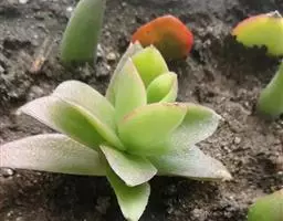 叶片互生,排列成延长的莲花座,叶片呈倒卵型。有叶尖,叶尖红色。出状态后十分漂亮。