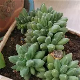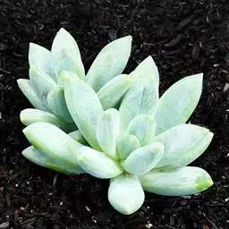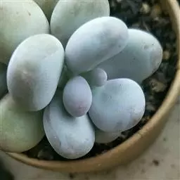 蓝黛莲是一种景天科厚叶草属植物。叶片呈略扁的圆柱形,排列成莲座状;颜色为灰绿色,…