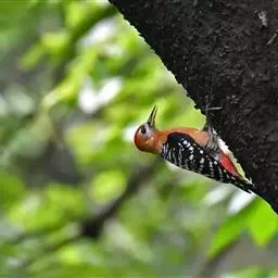 棕腹啄木鸟为啄木鸟科,啄木鸟属是中等体型的鸟类,体长约20厘米。头顶部具红色斑带。脚强健,有趾4个,…