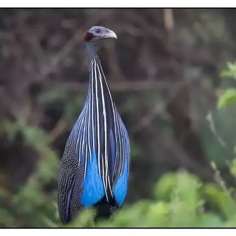 黑长尾雉大型鸡类,体长53~88厘米。雄较雌大。雄鸟通体紫蓝色,脸鲜红色,翅上有一条显著的白色翅斑…