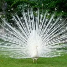 白孔雀,脊椎动物,鸟纲,雉科。其全身洁白无瑕,羽毛无杂色,…