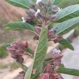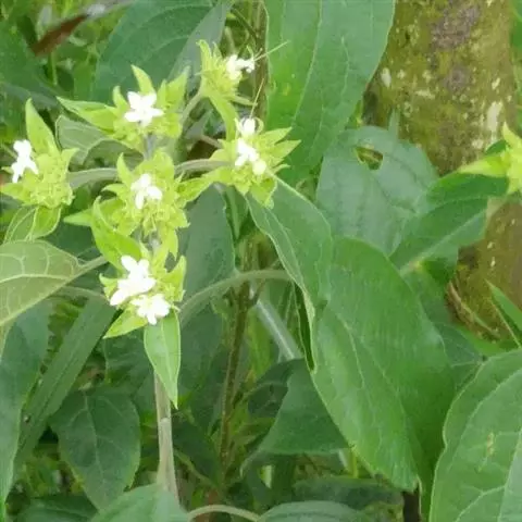 植物体被毛较密,伞房状聚伞花序较密集,花较多,苞片较多,花单瓣,较大,花萼长1.3-2.5厘米,萼裂片披针形,长1-1.6厘米,花冠白色或淡红色,花冠管长2-3厘米,裂片椭圆形,长约1厘米。核果近球形,径8-10毫米,成熟时蓝黑色。宿萼增大包果。花果期5-11月。