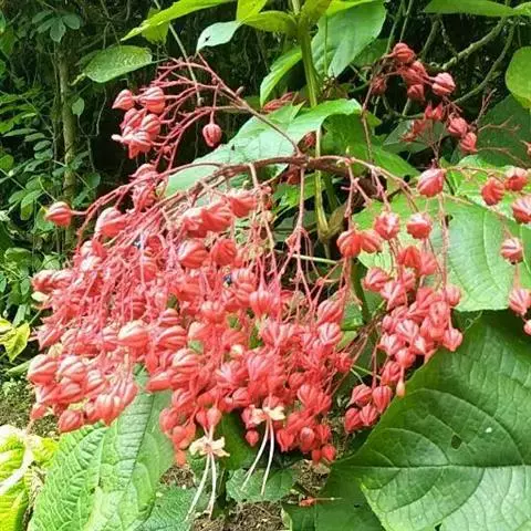 红萼龙吐珠马鞭草科大青属常绿木质藤本。叶对生,纸质,具柄,卵状椭圆形,全缘,先端渐尖,基部近圆形。…