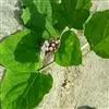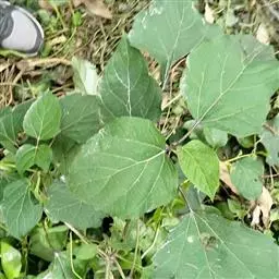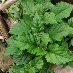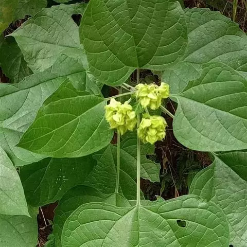 叶片宽卵形或近于心形,长9-22厘米,宽8-21厘米,顶端渐尖,基部截形,宽楔形或浅心形,边缘疏生粗齿,表面密被刚伏毛,背面密被柔毛,沿脉更密或有时两面毛较少,基部三出脉,脉腋有数个盘状腺体,叶片揉之有臭味;叶柄长3-17厘米,被短柔毛,有时密似绒毛。