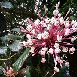 烟火树 Merr.)是唇形科、大青属常绿灌木或小乔木,株高可达4米。幼枝方形,墨绿色。叶对生,…