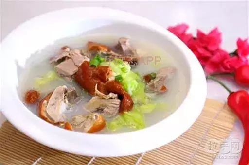 英文名:Roast Duck Bone Soup 鲜香适口,咸中带甜。