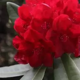 团叶杜鹃(学名:Rhododendron orbiculare Decne.):常绿灌木,稀小乔木,高1-4.5米,稀达15米;树皮褐色;幼枝绿色,无毛,老枝黄褐色。顶生冬芽卵形至阔卵形,被稀疏的微柔毛。叶厚革质,常3-5枚在枝顶近于轮生,阔卵形至圆形,上面深绿色,下面淡绿色至灰白色。顶生伞房花序疏松,有花7-8朵;花冠钟形,长3.2-3.5厘米,宽4.5-6厘米,红蔷薇色,无毛,裂片7,宽卵形。蒴果圆柱形,弯曲,绿色,有腺体残迹。花期5-6月,果期8-10月。