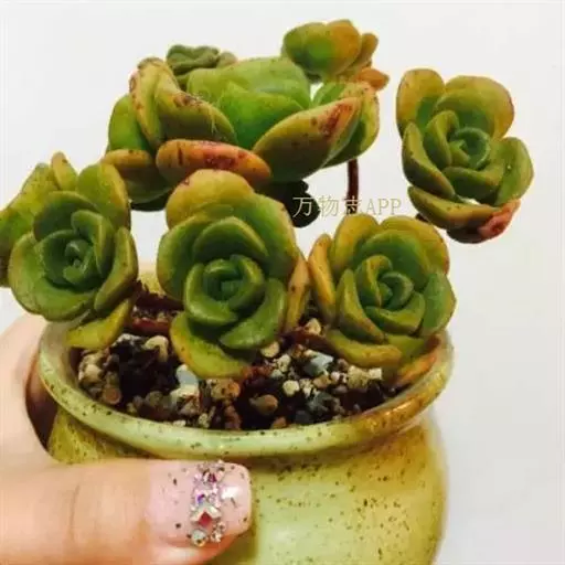 夕映爱又名清盛锦、艳日晖、灿烂、雅宴曲,景天科莲花掌属植物,多用于园林盆景和家居植物摆设。