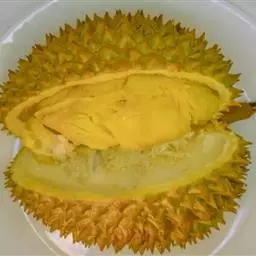榴梿,是一种锦葵目、木棉科巨型的热带常绿乔木,叶片长圆,顶端较尖,聚伞花序,花色淡黄,果实足球大小…