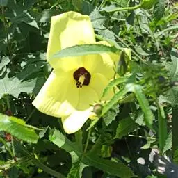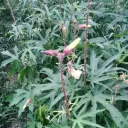 黄蜀葵 Medicus),是锦葵科秋葵属一年生或多年生草本。全株疏被长硬毛;叶近圆形,…