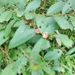 金英常绿灌木,株高约50-160厘米,嫩茎红色。叶片绿色,对生,椭圆形,先端尖,基部楔形,全缘。…