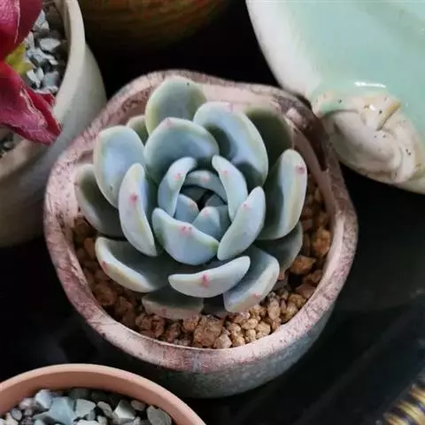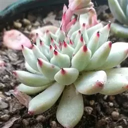 女雏是景天科石莲花属的多肉植物。特征是小巧的株形和橙粉色叶缘。极易生侧芽,…