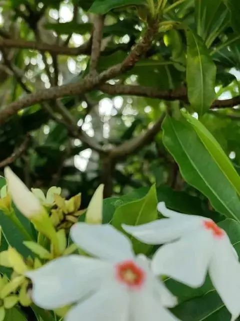 狗牙花 R. Br. ex Roem. & Schult.)是夹竹桃科山辣椒属灌木植物;枝灰绿色;叶椭圆形或椭圆状长圆形,叶面深绿色,背面淡绿色,叶面扁平;花聚伞花序腋生,通常双生,萼片长圆形,边缘有缘毛,花冠白色;果长圆形;花期六至十一月;果期秋季。狗牙花因其花冠裂片边缘有皱纹,状如狗牙,故名。狗牙花原产于印度及中国云南,在广西、广东、台湾及亚洲热带和亚热带等地区广泛栽培。狗牙花喜温暖湿润,不耐寒,宜半阴,对土壤要求不严,喜肥沃、排水良好的酸性土壤,常生长于山地灌木丛中。狗牙花的主要繁殖方式为扦插。狗牙花味酸、凉,有清热降压、解毒消肿的功效,可用于治疗咽喉肿痛,跌打损伤。狗牙花枝叶茂密,株型紧凑,花朵净白素丽,典雅朴质,盛花时十分美观,且花期长,具有一定观赏价值。狗牙花还有较高的经济价值,园林中应用极为普遍,可丛植于林缘、路