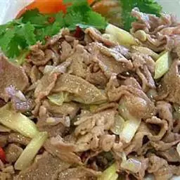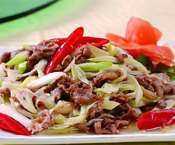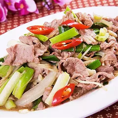 葱爆羊肉 (Sautéed Lamb Slices with Scallion),属于北京菜,是北京菜中的经典之一。具有补阳、壮腰健肾、补虚养身之功效。羊肉滑嫩、鲜香不膻、汪油包汁、食后回味无穷。 肉嫩、略带葱香味。