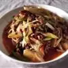 5.最后放入葱白、蒜米、醋(醋忌与羊肉一同食用!),淋入香油即成。