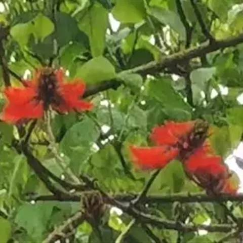 龙牙花红叶扶疏,初夏开花,深红色的总状花序好似一串红色月牙,艳丽夺目,适用于公园和庭院栽植,若盆栽可用来点缀室内环境。是阿根廷国花。(概述图片参考资料来源: )