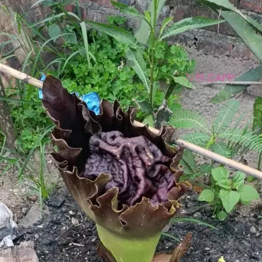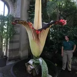 世界著名臭花——疣柄魔芋在武汉植物园开花