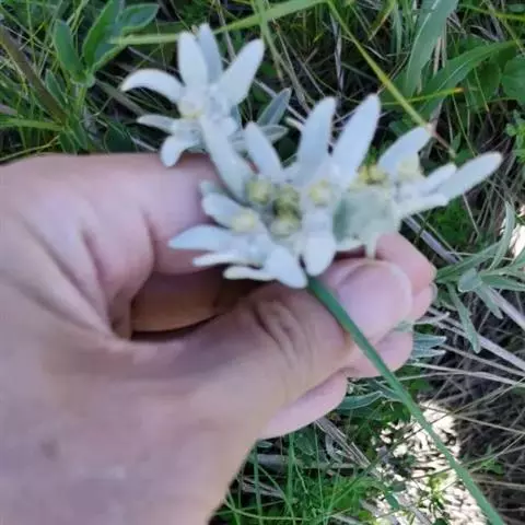 峨眉火绒草(学名:Leontopodium omeiense Ling)是菊科火绒草属植物。根出条细长,稍木质,平卧或斜升,有枯萎宿存的叶和顶生的叶丛,在叶丛上生长花茎。花茎常直立,长5—18厘米,不分枝,被白色棉状密茸毛,全部有叶,节间长1—2.5厘米。基部叶密集成莲座状,顶端圆形,在花期生存。
