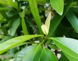 ‘香蕉’玉兰(Magnolia denudata ‘Xiangjiao’)。落叶小乔木,株型紧凑。花白色,花蕾初开时弯曲如香蕉状。花被片9枚,内外几同形。花期3月。果期9月。