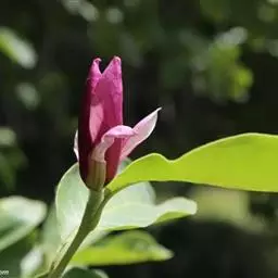 ‘红颜妒’玉兰(Magnolia ‘HongyanDu’)。红元宝玉兰(Magnolia soulangiana ‘HongYuanbao’)和玉灯玉兰的杂交品种。落叶小乔木,株型紧凑。花背面深红色,内里浅红色。花被片9-11片,外轮略小,有时大萼片状。花杯状,花被片直立,盛开时花被片外张,但不完全平展,有时略皱,花径15-18厘米。花期3月中下旬。果未见。
