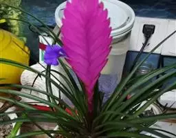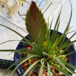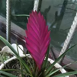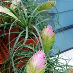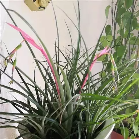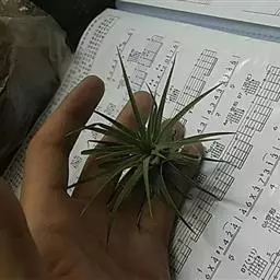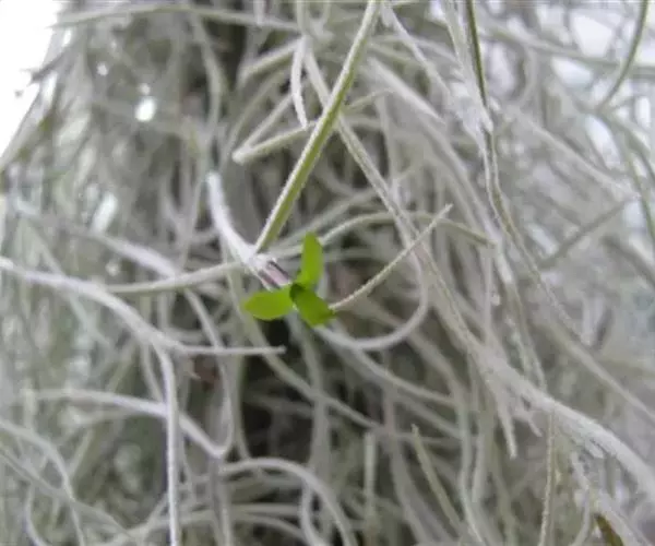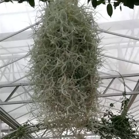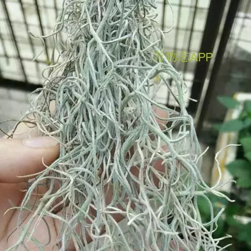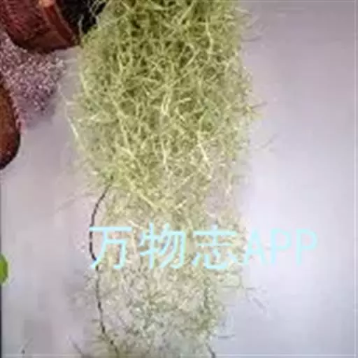 松萝铁兰也叫松萝凤梨,是凤梨科铁兰属,草本植物,植株下垂生长,茎长,纤细;叶片互生,半圆形,长3~4cm,密被银灰色鳞片;小花腋生,黄绿色,花萼紫色,小苞片褐色,花芳香。外形似地衣类的松萝。原产美国南部、阿根廷中部,中、南美洲广布。