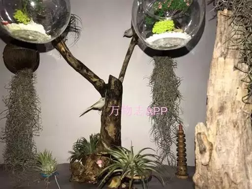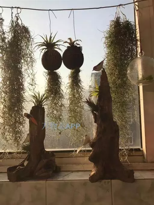 松萝铁兰是直接生长于空气之中,而无须任何土壤等培养基质的气生类植物,在长期的进化过程中,松萝铁兰不像绝大多数植物靠根吸收营养物质,而是依靠它们自身叶面上独特的“保卫细胞”——白色鳞片吸收养分和水。它们的根已经退化成木质纤维,只能起固定作用,失去了一般植物“根”的功能,所以松萝凤梨的根系可以完全暴露在外而不受影响生长,有时甚至看不到它的根,很有流浪的味道,这也构成了它最出众的观赏特色。另外,日常养护十分方便、简单,间隔数日向其喷水及保持适当的空气湿度即可。即可生长于户外,亦可以悬挂于办公室等室内环境下。由于其出众的观赏特点,而日益受到办公室白领、阳台居家花卉养植爱好者的热烈追捧。