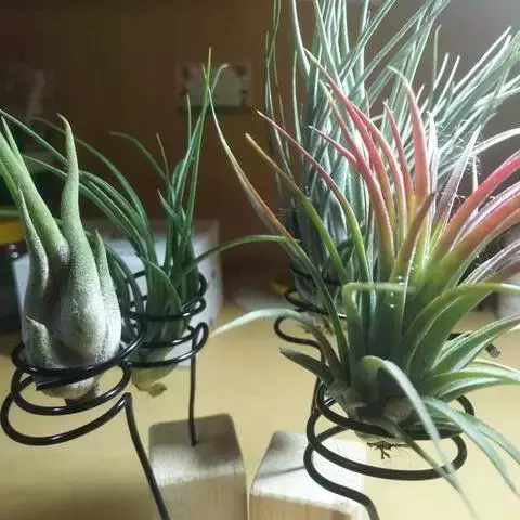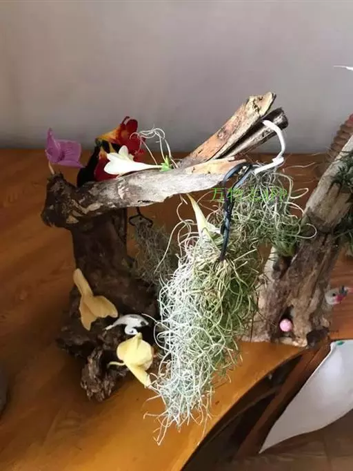 可用铁丝、铜丝、竹条等韧性材料弯成带钩的圆圈,在凤梨、铁兰成株上截取数段,悬挂于圈上即可;亦可以直接缠挂在木本植物、花卉或竹类等多年生植物的枝条上;即使悬挂于住宅或办公室类的各种支架物上,亦可正常生长。