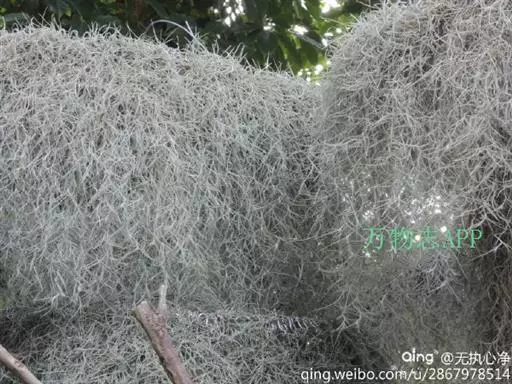 像一顶假发,像一团胡须,高悬在半空中,不见水土滋养,甚至连根在哪儿也看不到,这就是神奇植物松萝铁兰。它靠叶子上的鳞片吸收空气中的水分与养分,故又名“空气草”。