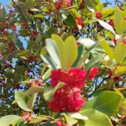 红花荷:金缕梅科红花荷属常绿乔木,高可达12米,嫩枝颇粗壮,叶厚革质,卵形,光滑无毛,有三出脉,叶…