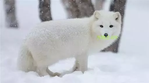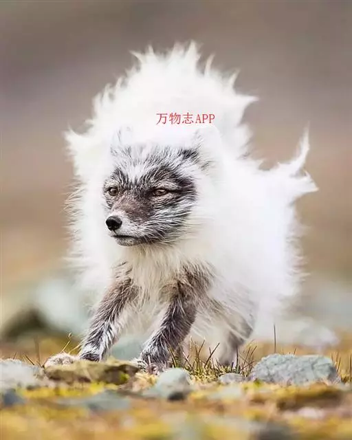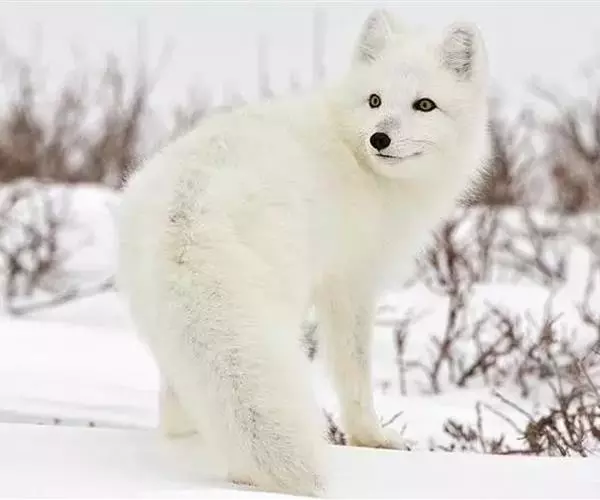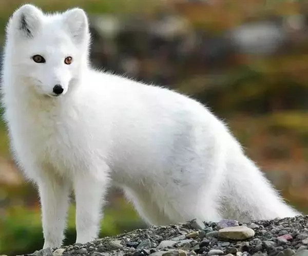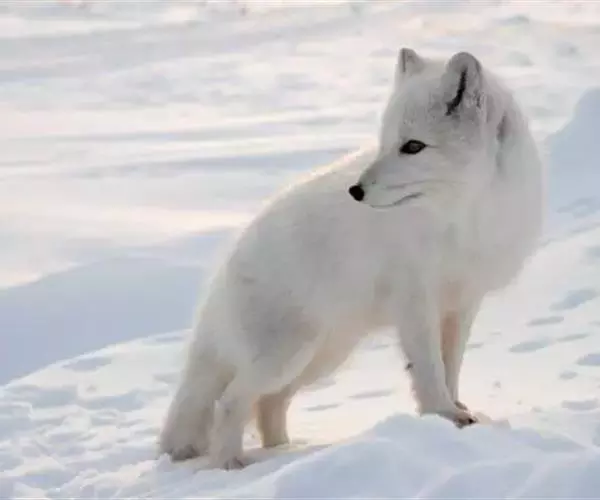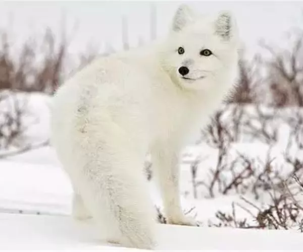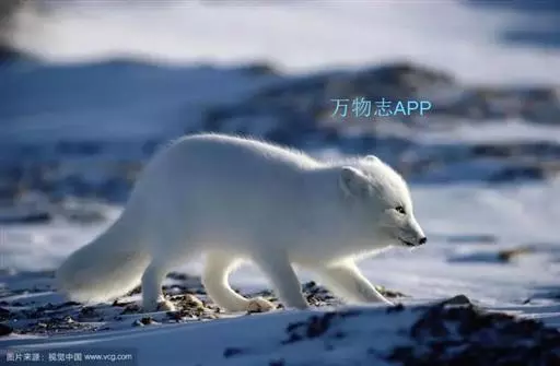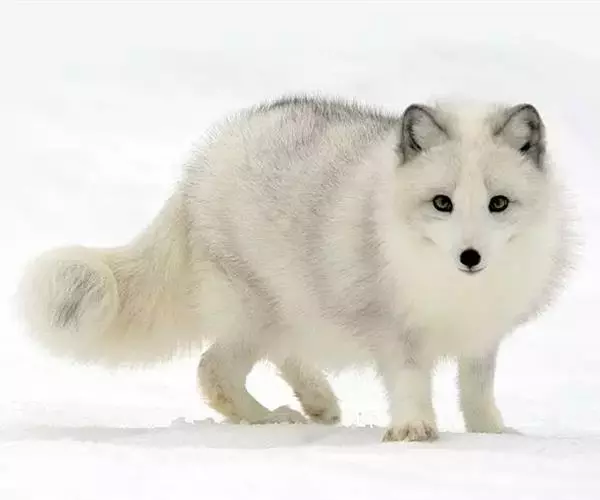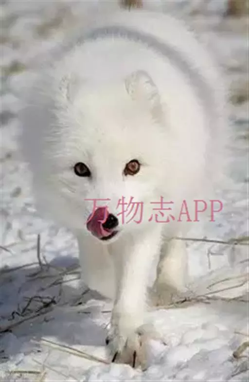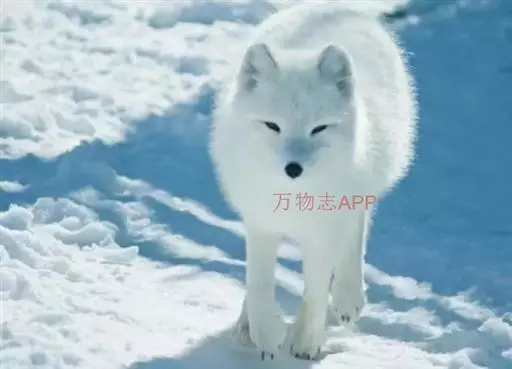 北极狐(学名:Vulpes lagopus):体长50-60厘米,尾长20-25厘米,体重2.5-4千克。颜面窄,嘴尖,耳圆,尾毛蓬松,尖端白色。冬季全身体毛为白色,仅鼻尖为黑色;夏季体毛为灰黑色,腹面颜色较浅。具有很密的绒毛和较少的针毛,可在零下50℃的冰原上生活。足底毛特别厚。