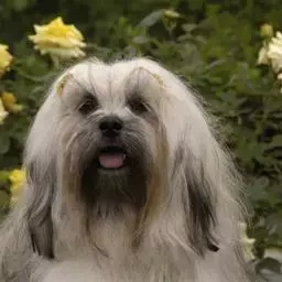 拉萨犬是食肉目犬科犬属哺乳动物。头盖狭窄,黑色的鼻子及丰厚的长毛;两颊胡须及颚部胡须很长;厚实的耳朵下垂;眼古铜色,大小中等,椭圆状;身长比身高长,背部水平,腰部强健;被毛上毛长粗且直,下毛丰厚;沿着背骨,被毛左右清楚分开;四肢以足部由密集丰厚的长毛覆盖着;前肢直,后肢肌肉十分发达;足部坚挺呈圆形,肉趾特别厚;尾毛密集,尾跟高,尾巴朝上卷曲,毛尖容易纠结在一起。寿命为12-14年。拉萨犬原产于中国西藏,现广泛分布于世界各地。吃苦耐劳、个性独立友善、聪明自信、活泼热情、忠心耿耿且沉着冷静,但对陌生人有高度的警觉性。适合饲养在家庭中。不易训练。饲养管理上,需定时修剪会进入眼睛的毛;被毛需要经常擦拭和彻底梳理,以免显得脏污蓬乱。拉萨犬是西藏地区四大名犬之一。1934年,拉萨犬被认定为独立品种。据说饲养此犬者可以增福和驱魔,以前又称“驱魔圣犬”,现在则是非常理想的家庭犬。
