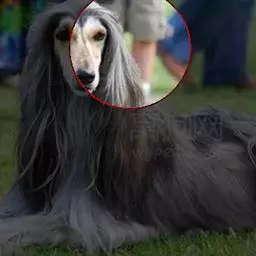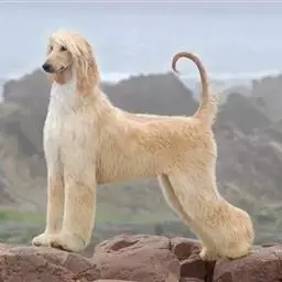 阿富汗猎犬全身披丝绢状的长毛,毛色鲜艳,呈多种颜色,背中线附近毛短,…