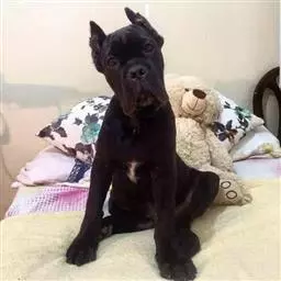 头部:头部巨大。头部的长度(从后枕部到鼻镜的距离)约为肩高的2/5,口吻和眼睛周围的皮肤颜色深。眼睛:中等大小,杏仁状,位置不能太深。眼睛的颜色为深棕色,眼睑为灰色或黑色。浅色眼睛属于缺陷;兰眼睛属于失格。耳朵:形状是长三角形,尖端略圆。耳根位置适中,长度能延伸到两侧的内眼角处。立耳或耳朵位置趋向于直立属于缺陷。脑袋:脑袋宽阔,两眼间呈很好的圆弧形,后枕清晰,止部适中。口吻:口吻宽、粗,顶端像被截断。从内眼角到鼻镜的长度为头部长度的2/5,口吻的轮廓直,与头顶平行。下颚非常宽、发达。嘴唇紧,颜色为黑色。理想的牙龈和上颚为深色或黑色。鼻子:鼻镜宽,与口吻上轮廓成直角。鼻孔宽大,鼻镜为黑色,深灰色或深棕色鼻镜不理想,但可以接受。肉色鼻镜属于失格。咬和:剪状咬和最好,钳状咬和也可以接受。上颚突出式咬和或下颚突出式咬和属于缺陷,缺齿也属于缺陷。缺齿3颗或3颗以上属于失格。
