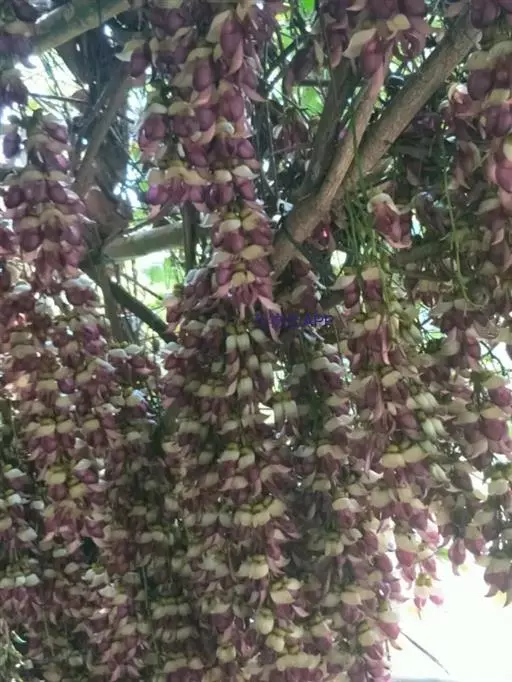 花序通常生在老茎上,长5-23厘米,有5-12节;花多聚生于顶部,每节有2-3花,常有恶臭;花梗长8-10毫米,密被伏贴的淡褐色或深褐色短毛和稀疏深褐色或红褐色细刚毛;苞片和小苞片脱落;花萼密被伏贴的深褐色或淡褐色短毛和灰白或红褐色脱落的刚毛,花萼宽杯形,长8-12毫米,宽12-20毫米,2侧齿长3-4毫米,最下齿长5-6毫米;花冠暗紫色,但旗瓣带绿白色,旗瓣长3-3.5厘米,先端圆,基部的耳很小,长约1毫米,翼瓣长4-5.2厘米,宽1.5-1.7厘米,瓣柄长5-7毫米,耳长3-5毫米,龙骨瓣长5-6.3厘米,瓣柄长8-10毫米,耳长1-3毫米;雄蕊管长4.5-5.5厘米。