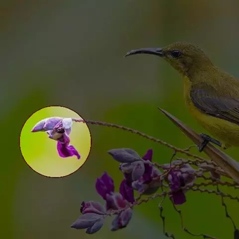 顶生总状花序狭长,长约为茎的1/4-1/5,有12-25朵花;轴及花梗密被紧贴的短柔毛;下部苞片似叶,中部以上的苞片线形;花梗长4-8毫米;小苞片生花梗顶部,线形,长3-6毫米;萼片黄色带绿色,或暗紫色,外面被短柔毛,上萼片盔状船形,具短爪,高1.5-1.6厘米,下缘斜升,上部向下弧状弯曲,外缘斜,侧萼片长约1.5厘米,下萼片斜长圆状卵形;花瓣疏被短毛,瓣片长约7毫米,唇长约3毫米,距长约1毫米,向后弯曲;花丝无毛或疏被短毛,全缘;心皮5,无毛或疏被短毛。